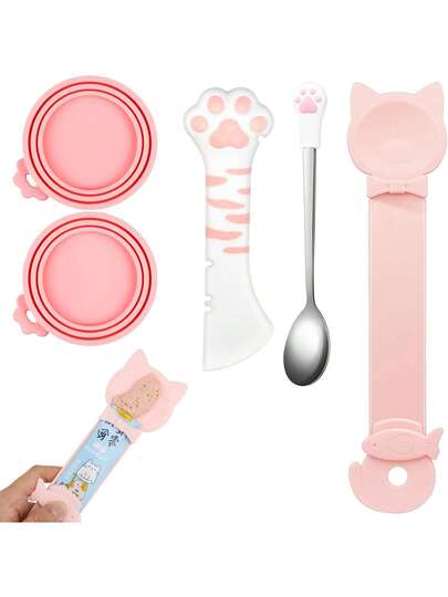 5-delars set med lock till burkar för husdjursmat, silikonlock till burkar för husdjursmat med multifunktionell skopa och burköppnare för katt, klämdispenser för katt, våtfodersked i rostfritt stål för katter och hundar - Multifärgad - Visa 6
