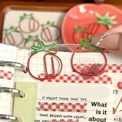 5pcs Tomato Shaped Dual-Color Asymmetrical Bookmarks With Leaf Top, Creative Desktop Decor, Office/Study Diary Accessories, Interesting Stationery, Sturdy Bookmarks - Multicolor - View 7