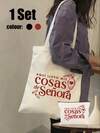 Tote Bag Set, Including Shoulder Bag And Beauty Bag, Minimalist College Style, Printed Shopping Bag, Large Capacity, Suitable For Commuting, School And University, Suitable For Teachers, Classmates, Wives And Family. Suitable For Autumn And Winter Outfits, Valentine'S Day Gift