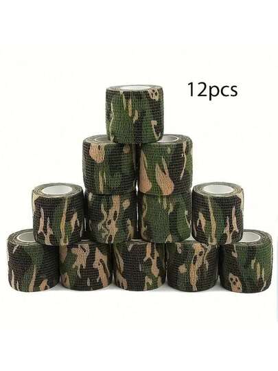 6/12 Rolls Camouflage Self-Adhesive Tape, Non-Woven Fabric Cohesive Bandage Wrap, Elastic For Rifle Shotgun Camo Tape - Multicolor - View 1