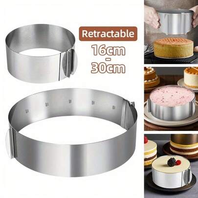 6-12in/15~30cm Stainless Steel Cake Mold, Suitable For Universal Cake Rings, Adjustable Stainless Steel Cake Mold, 8cm Height, Common Chiffon Cake Mold, Round Baking Mold, Cake Edge Mold - - - View 1