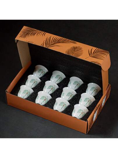 6/12 st återanvändbara keramiska espressokoppar med palmträdsmönster, lämpliga för familjesammankomster och speciella tillfällen, saudisk stil, hållbara keramiska koppar | Botanisk dekoration - Multifärgad - Visa 1