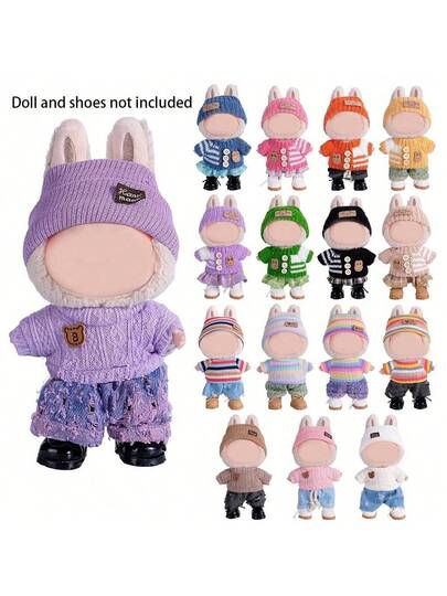 6.69 Inch Doll Clothes, Compatible With Labubu, Includes 3 Outfits - Fashionable Bucket Hat, Sweater And Pants Or Skirt Set, Suitable For 6.69 Inch Doll, Cute Doll Figure Accessories For Play And Display (Shoes And Doll Not Included) - Multicolor - View 6