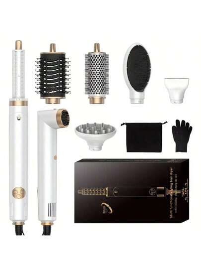 6-In-1 Multi-Functional Hot Air Brush & Hair Dryer | 200M Negative Ions, Self-Cleaning (Reverse Dust) | Adjustable Curling Head (Left/Right) | Long-Lasting Brushless Motor, Great Christmas, New Year & Thanksgiving Gift - EU F Type Plug(220-240V) - View 1