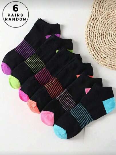 6 Pairs Women's Random Color Waist Shaping Breathable Soft Comfortable Versatile Ankle Socks, All Season - Multicolor - View 1