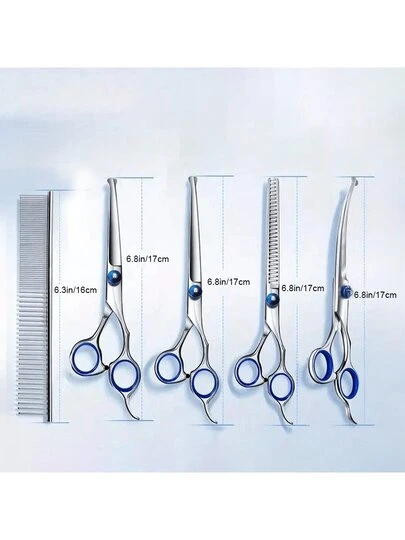 6 Pieces Professional Pet Grooming Scissors Set, Stainless Steel Dog And Cat Hair Thinning Shears With Downward Curved, Straight, Upward Curved Scissors And Comb, Ambidextrous Use - Multicolor - View 10