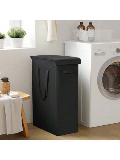 60L tunn klädkorg med lock, smal klädkorg med handtag, hopfällbar bärbar klädförvaringskorg, klädkorg, tvättkorg, badrumsorganisatör, korg, förvaringskorg, hopfällbar klädkorg - Svart - Visa 1