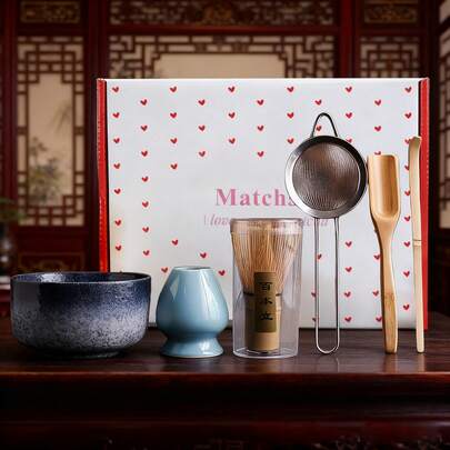 6PCS/Set Japanese Bamboo Matcha Set, Including Bowl, Tea Puller, Spoon, Tea Whisk Stand, Strainer, Tea Whisk, Perfect Gift For Ceremony, Traditional Decoration - Multicolor - View 1