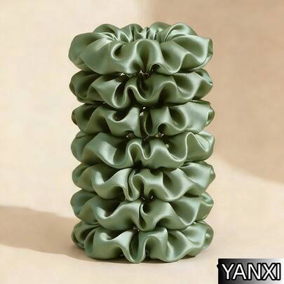 6pcs/20pcs Set Sage Green Satin Scrunchies, Simple & Elegant Hair Accessories - Sage Green - View 1
