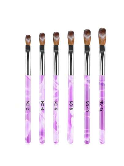 6pcs Acrylic Nail Brush Set, Nail Art Design Tools, 3D Builder Nail Gel Brush - Acrylic Nail Drawing Pen - Nail Art Brush For Salon At Home Manicure - Purple - View 6