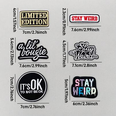 6pcs Letter Embroidered "Stay Weird" Funny Patch For Bag, Hat, T-Shirts And Clothing, For Crafters & DIY Enthusiasts, Iron-On Accessory - F - View 6
