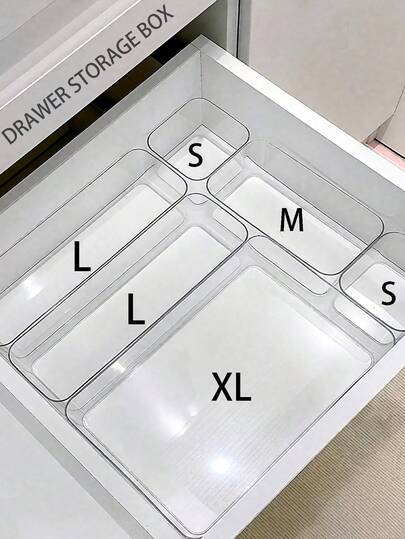 6pcs/Set Drawer Storage Boxes, Transparent Vanity Makeup Organizer Boxes, Multi-Compartment Jewelry & Small Items Storage Boxes, Elegant Decor For Room, Home, Bedroom, Autumn - Clear - View 7