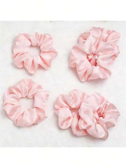 6pcs/Set Women's Pink Satin Scrunchies, Simple & Elegant Daily Hair Accessories Set ,Ponytail Holders ,Hair Elastics ,Rubber Bands ,Hair Rope ,Elastic Hair Tie - Pink - View 6