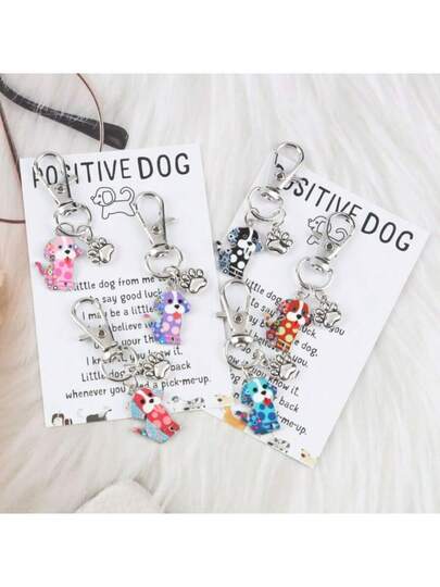 6pcs Unique Creative Cute Puppy Design Keychain Set With Positive Energy Dog Cards, Ideal For Birthday, Wedding, Christmas Party, Home And Kitchen Party Small Gifts