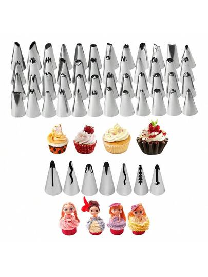 7/55pcs Stainless Steel Decorating Piping Nozzle Set - Heavy Duty 430 Stainless Steel Cake Decorating Tools, Suitable For Cupcakes, Mousse, Pastries, Cookies, Ice Cream - Professional Baking Supplies For Home And Commercial Use - - - View 2