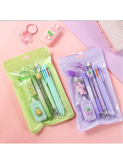 7-i-1-set med infällbar penna och suddgummi - Multifunktionella kontorsskrivbordstillbehör, inklusive läromedel, skolmaterial, kontorsmaterial, kontorsmaterial, kontorsmaterial, skolmaterial, söta kontorsmaterial, skolmaterial - Multifärgad - Visa 7