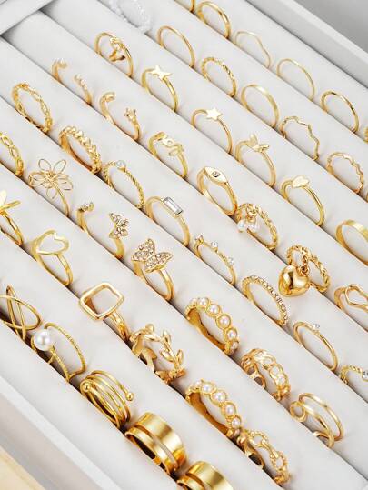 70/73/23/30/24pcs Simple Metal Geometric Faux Pearl Heart Stackable Ring Set, Women Holiday Date Gift, Casual Party Accessory, Suitable For Girlfriend/Friend - Style 1 - View 8