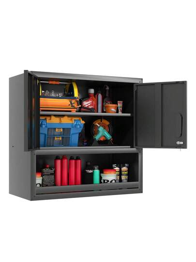 77cm Wall Mountable Metal Tool Cabinet With Lockable Door, 1 Adjustable Shelf And 1 Open Drawer - Ideal For Garage, Warehouse, Office (Assembly Required) - 1 - View 11