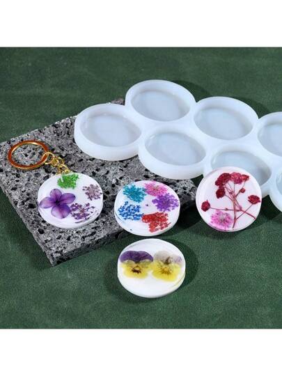 8-Cavity Silicone Resin Mold, Multi-Size Round Pendant Crafts DIY Mold For Jewelry, Keychain, Bags Pendants - White - View 1