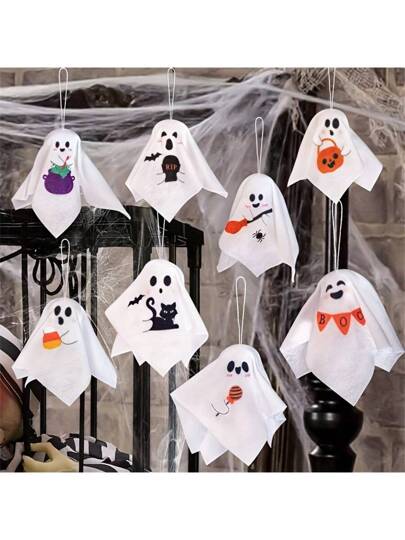 8pcs Halloween Props, Ghost House Bar KTV Ghost Hand Puppet Hanging Ghost Colorful Hanging Ghost Decoration Supplies - White - View 8