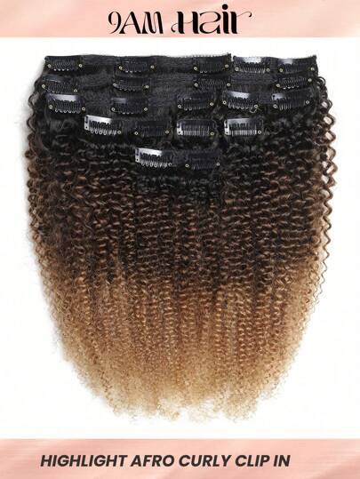 8 st. Afro Kinky Lockigt Clip In Highlight Virgin Human Hair Extensions Clip-In Hair Extensions Ombre Blonde Weft Hair Extensions Hair Weaves Ombre Color Hair Extensions - SNatural/4/27 - Visa 6