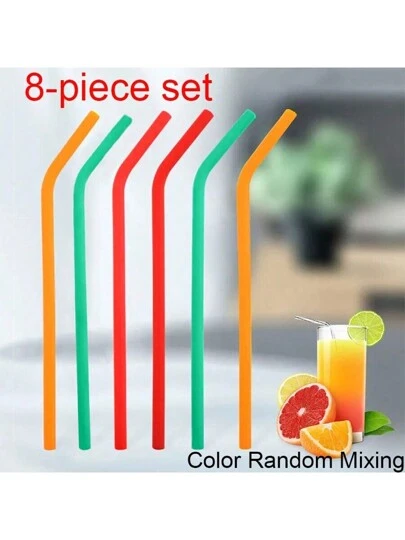 8pcs Reusable Silicone Straws Set, Random Color Straws With 6 Straws & 2 Cleaning Brushes - Color Mixing - View 8