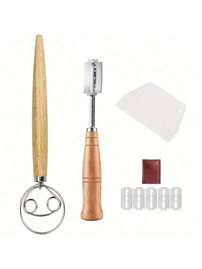 9pcs/Set, Bread Lame Danish Dough Whisk Kit, Including 5 Replacement Blades, Dough Scraper And Leather Protective Cover, Bread Making Tools, Scoring Bread Knife Set, For Pastry, Baking Cake, Dessert, Sourdough, Pizza, Kitchen Baking Tools - A Set - View 9