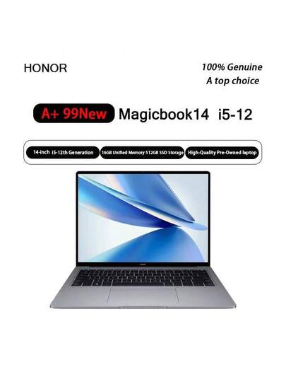 A+Used Honor Notebook MagicBook 14 Narrow Border Full Screen Lightweight Gaming Office Learning Laptop Used I5 12th Generation 16+512G Solo Display 99% New - Grey - View 1