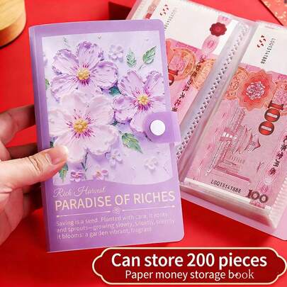 A6 100 Grid 100 Day Savings Planner Book, Oil Painting Style 3D Floral Waterproof Money Album, Collectible For Commemorative Banknotes Cash New Year Lucky Money Storage Organizer Durable Organizer For Cash Commemorative Banknotes Storage Perfect For New Year Lucky Money Commemorative Banknotes Cash - Sets - View 9