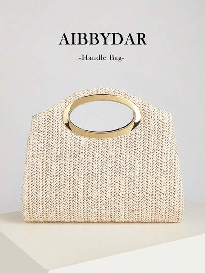 AIBBYDAR New Fashion Woven Handbag For Women, Versatile For Holiday, Beach, Business Commute, Casual, Minimalist, Beach, Vacation Essential - Beige - View 1