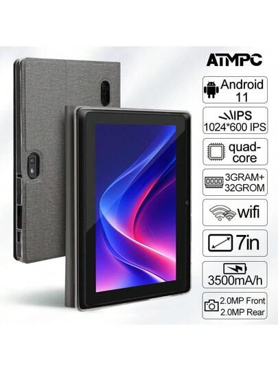 ATMPC 701A 7 Inch Android 11 Tablet, With 2GB DDR RAM, 32GB ROM,3500MAh, Quad Core Processor , 7 Inch Tablet, Android Tablet 1024X600IPS Screen, Camera First 30 Pixels And Then 200 Pixels, Wi Fi 802.11 B/G/N 2.4g,PC, Pad Tablet - Grey - View 1