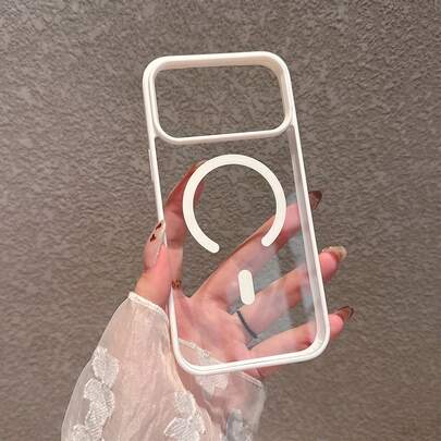 Acrylic Material White Rim Transparent Magnetic Phone Case Compatible With IPhone 17 Pro Max/17 Pro/17/16 Pro Max/16/16 Pro/16 Plus/11/15/15 Pro/15 Pro Max/12/13/14 Pro Max/12 Pro/12 Pro Max/13 Pro/13 Pro Max/14 Pro/14 Pro Max/14 Plus, Hard Shell, Anti-Yellowing