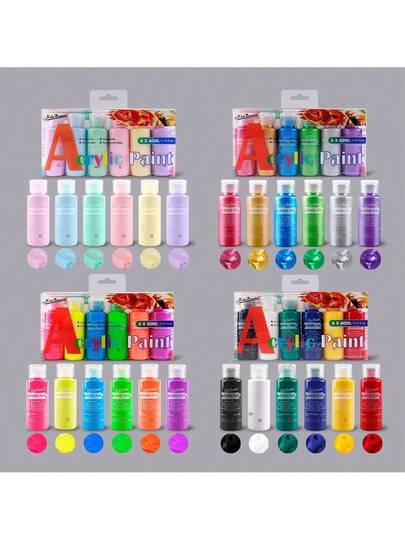 Acrylic Paint Set 6 Colors – 2oz/60ml Rich Pigment, Waterproof For Canvas, Wood, Rock, Ceramic, DIY Painting - one-size - View 1