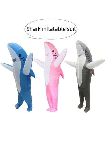 Adult Inflatable Shark Costume, Available In Blue, Pink, Gray, Suitable For Festivals, Parties, Cosplay - Multicolor - View 1