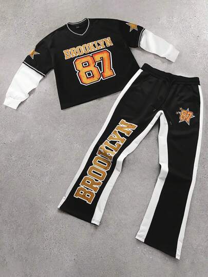 Aesthetic Post 2st/Set Män Bokstavstryckt Hoodie Och Sweatpants Outfit - Multifärgad - Visa 1