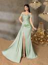 Lyxig sjöjungfruklänning med bara axlar och paljetter - Golvlång, åtsittande, transparent aftonklänning, lämplig för speciella tillfällen