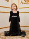 Tween flicka en axel långärmad balklänning med paljetter med flytande skärp