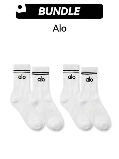 Alo 2 Packs Half-Crew Throwback Sock Breathable Quick Dry Sweat Absorption Soft Stretch Good Elasticity Versatile Sports Daily Unisex White A0480U-WHITE