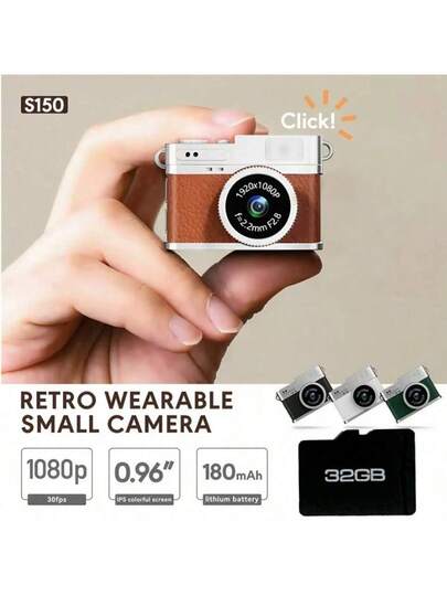 An Exquisite And Cute Mini Camera, A Small Portable Photography Gadget. This Retro, Mini Wearable Photography Device Comes. It Features Switchable Filters, A Flash, And Video Recording Capabilities, Equipped With A 0.96-Inch IPS Screen And An LED Fill Light. - Camera + 32G Memory Card - View 1