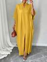 Vår- och sommarkläder för kvinnor med enkla knappar och en avslappnad långskjorta i kombination med vida byxor. En elegant vinteroutfit för kvinnor, lämplig för semestrar och dejter.