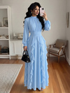 Women's Solid Color Woven Chiffon Ruffle Hem Elegant Stylish Arabic Dress