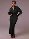 Athîral Dam enfärgad, vanlig axel, långärmad, elegant lång överrock med midja