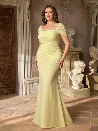Aureia Plus Size Elegant Yellow Chiffon Wedding Party Cocktail Bridesmaid Dress For Formal Occasions - Yellow - View 1