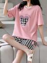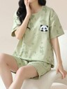 AICJ 2 st kvinnor casual enkel vår/sommar panda tryck kortärmad t-shirt och shorts pyjamas set, tvådelat set