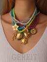 1 set med 3 st Fashionabla färgglada cirklar hängande halsband och örhängen i rostfritt stål, lämpliga för kvinnor dagligt slitage