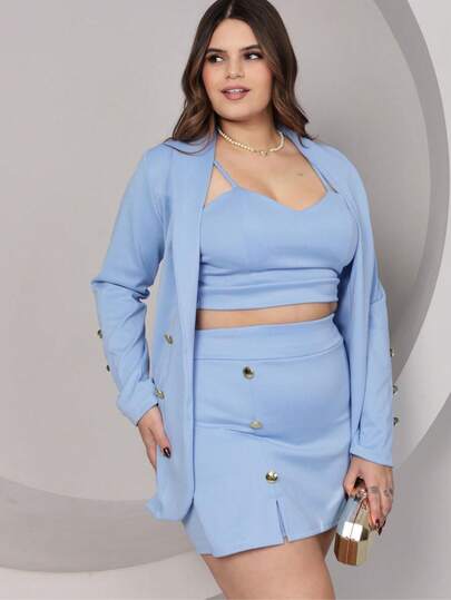 BLACK-WHITE Blazer, Shorts, Skirt and Crop Top Set