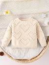 SHEIN Baby Girl Heart Pattern Long Sleeve Single-Breasted Knitted Cardigan And Knitted Pants Casual Suit,In Fall/Winter
