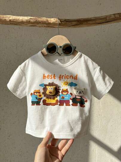 Baby Boy Knitted Solid Color Round Neck Cute Animal Pattern Casual T-Shirt - White - View 1