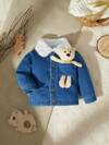 SHEIN Playful Pals Baby Girls Infant Toddler Newborn 0-3 Years Warm Double-Sided Hooded Faux Fur Flannel Leopard & Solid Black Mid-Length Jacket, Autumn/Winter Fall