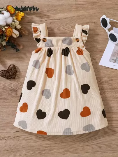 Bebis Flicka Hjärttryck Kant med Volanger Klänningar - Beige - Visa 1